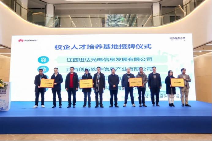 随后,各位嘉宾与在场与会人员共同见证了校企人才培养基地的授牌仪式,共16家企业与鲲鹏产业公司合作,正式建立人才培养基地,培养企业所需要的应用型技术人才,为九江市人才生态建设注入新动力。