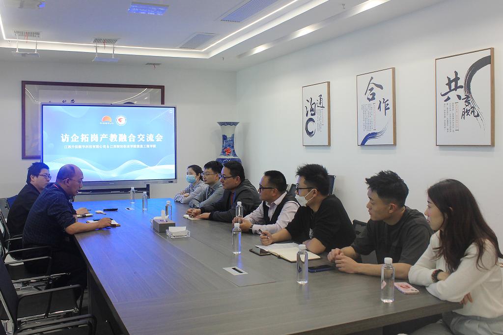 4月12日,公司党总支副书记陈荣华、科研创新服务团队负责人杨凯、软件教研室负责人宋子雄、大数据教研室负责人王奎、虚拟现实技术教研室负责人黄舒婷、基础教研室负责人彭刚、软件技术专业教师胡晓娥等一行7人赴江西升阳数字科技有限公司开展访企拓岗产教融合交流活动。江西升阳公司技术总监冯飞热情接待了陈荣华副书记一行。